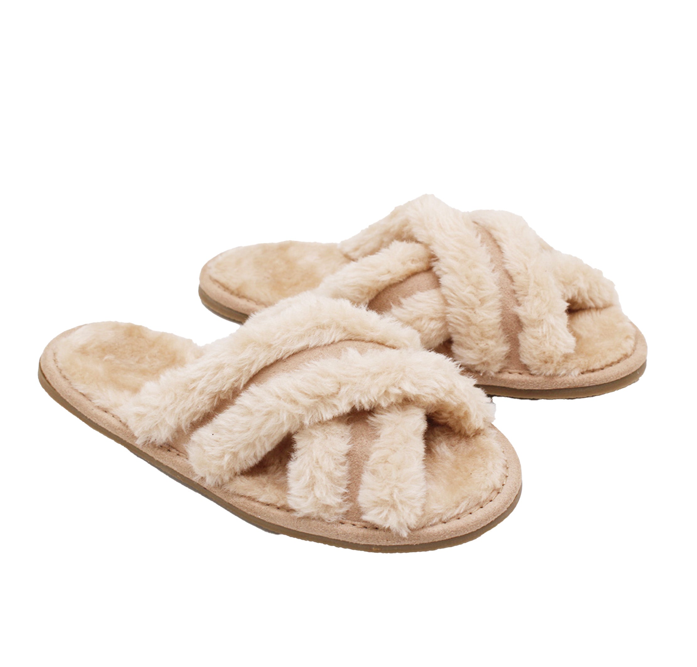 Plush Criss-Cross Slipper - Hard Sole