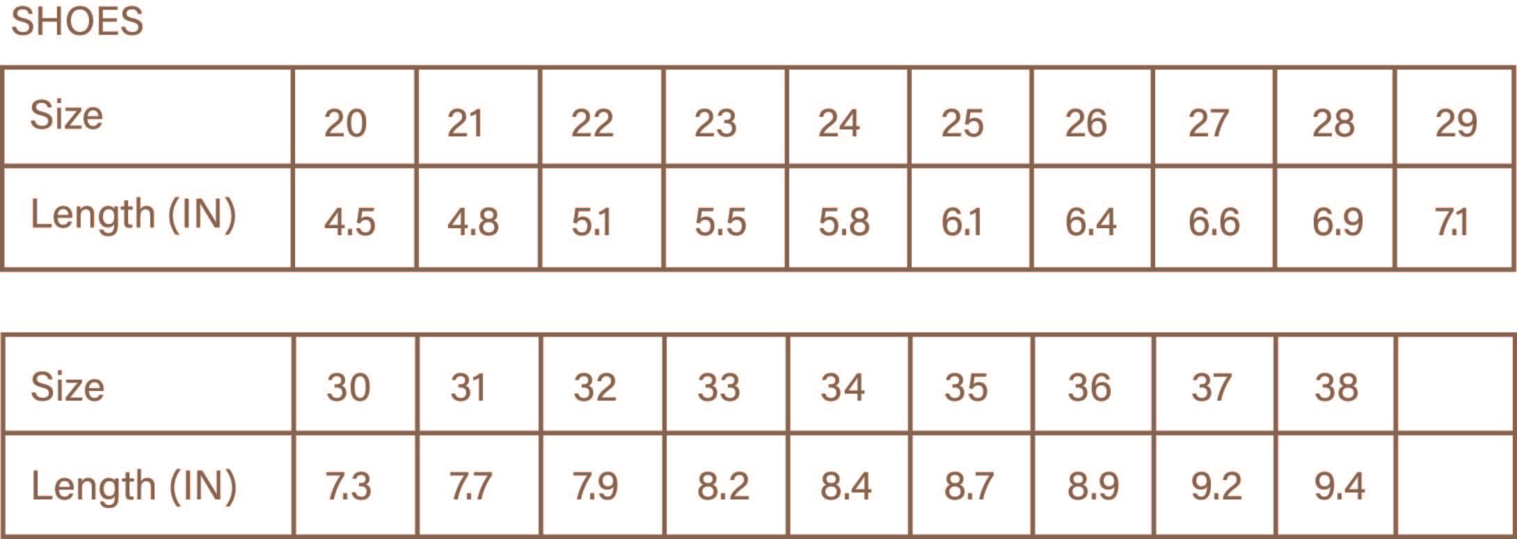 Please feel free to print out this chart and size your children in the comfort of your own home.